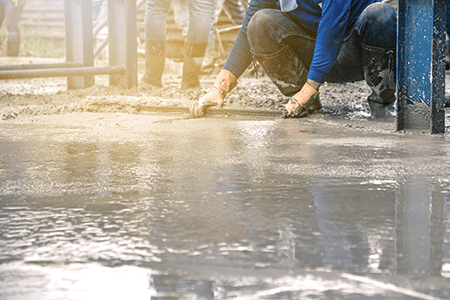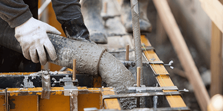 出来上がった型枠の中にコンクリートを流し込んでいきます。