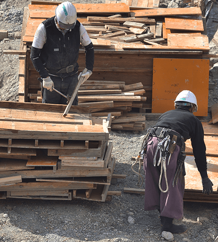 文字どおり建物の型を造る作業で、この型自体に曲がりやゆがみ、凹凸があると、躯体そのものに曲がりやゆがみが残ってしまいます。失敗が許されない、大切な工事です。